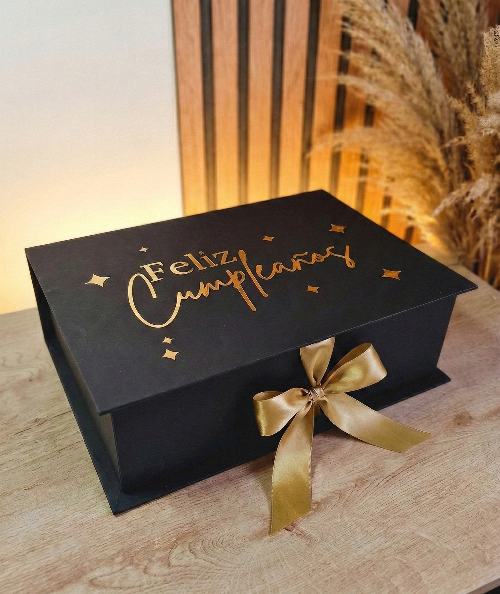 - Caja tipo baúl de lujo, tono negro con lazo